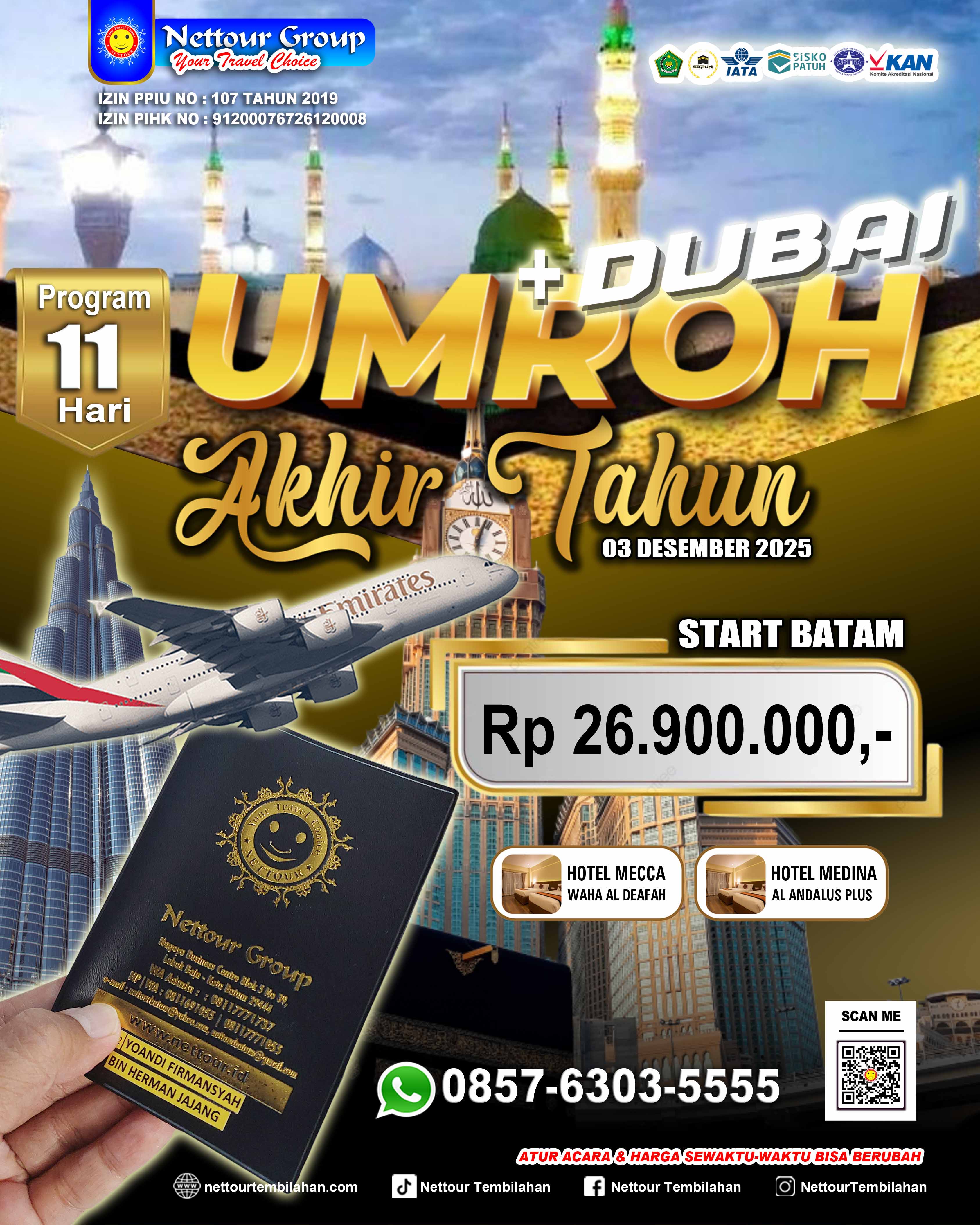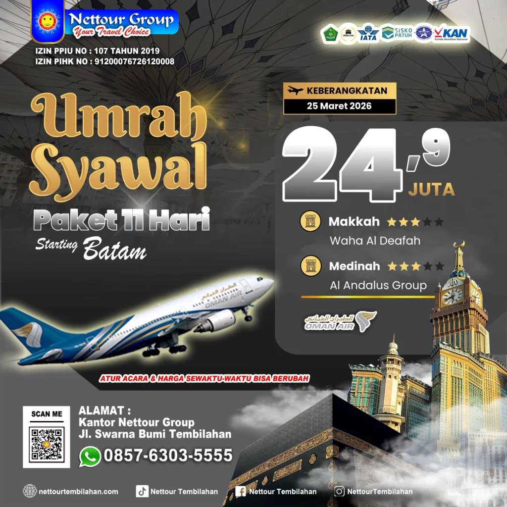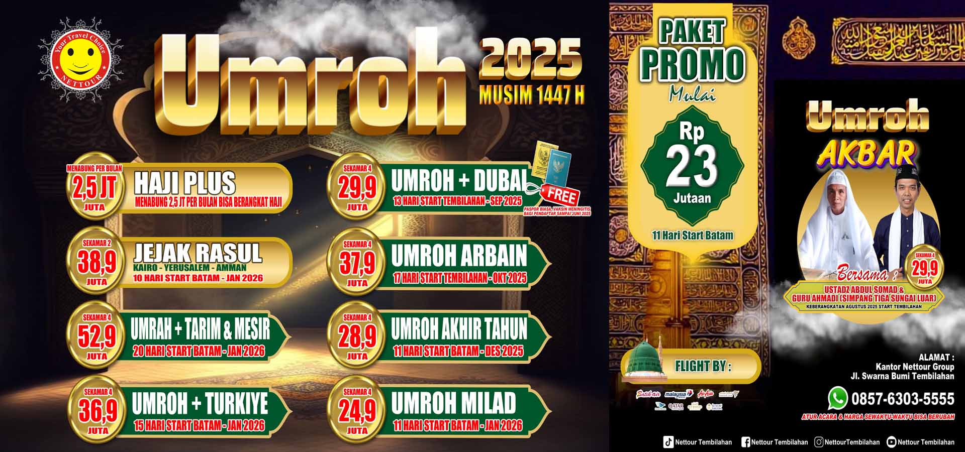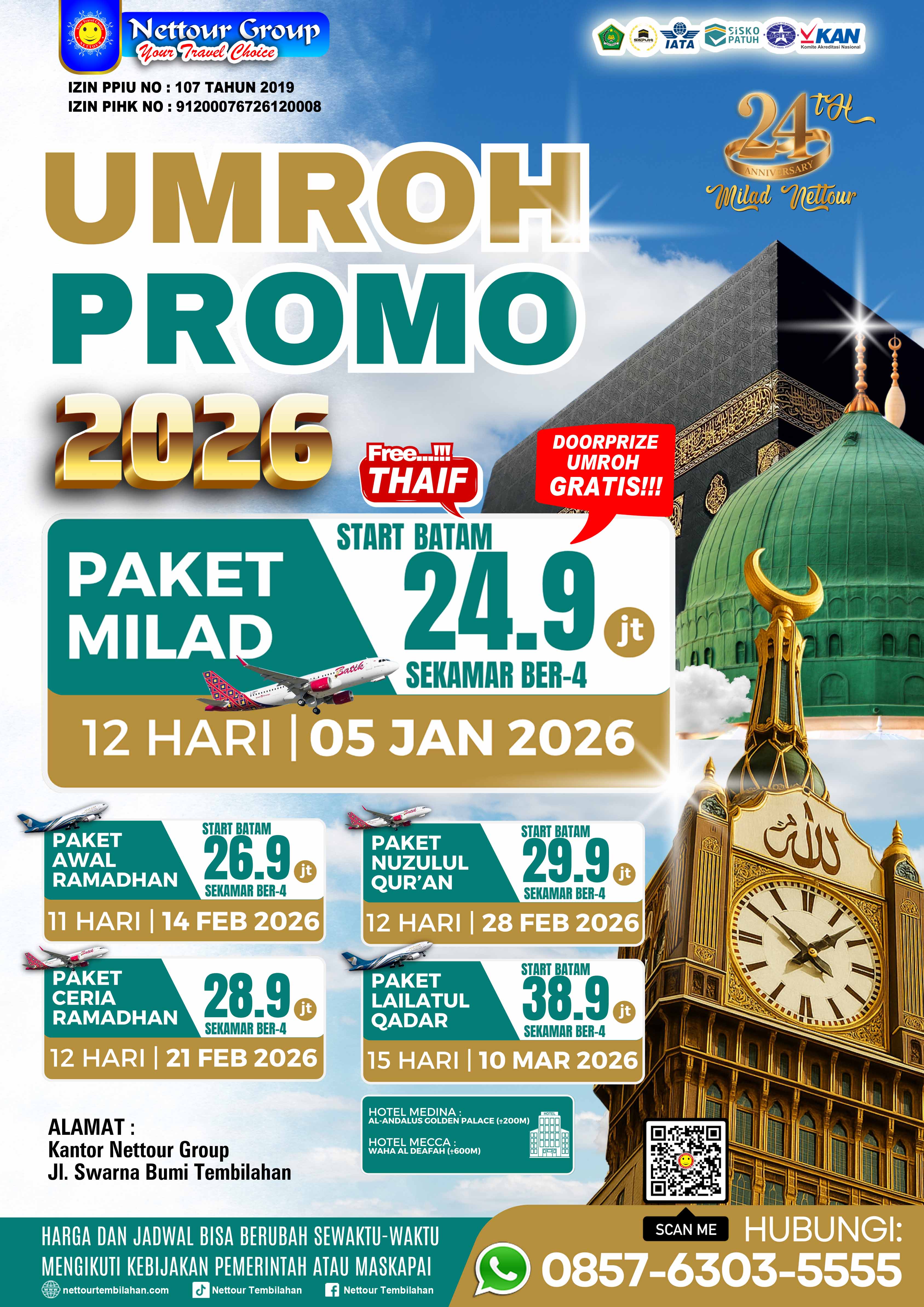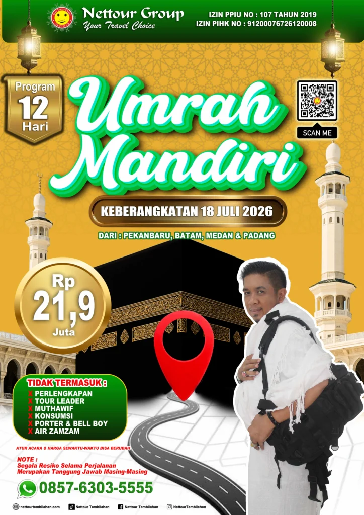 ✅ Perlengkapan Umrah: Buku Do\’a, Travel Bag, Kain Ihram (laki-laki), Mukena (perempuan), Kain Bahan Batik, Tas Paspor, Tas Sendal.