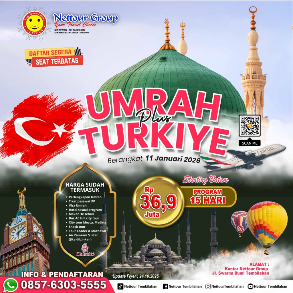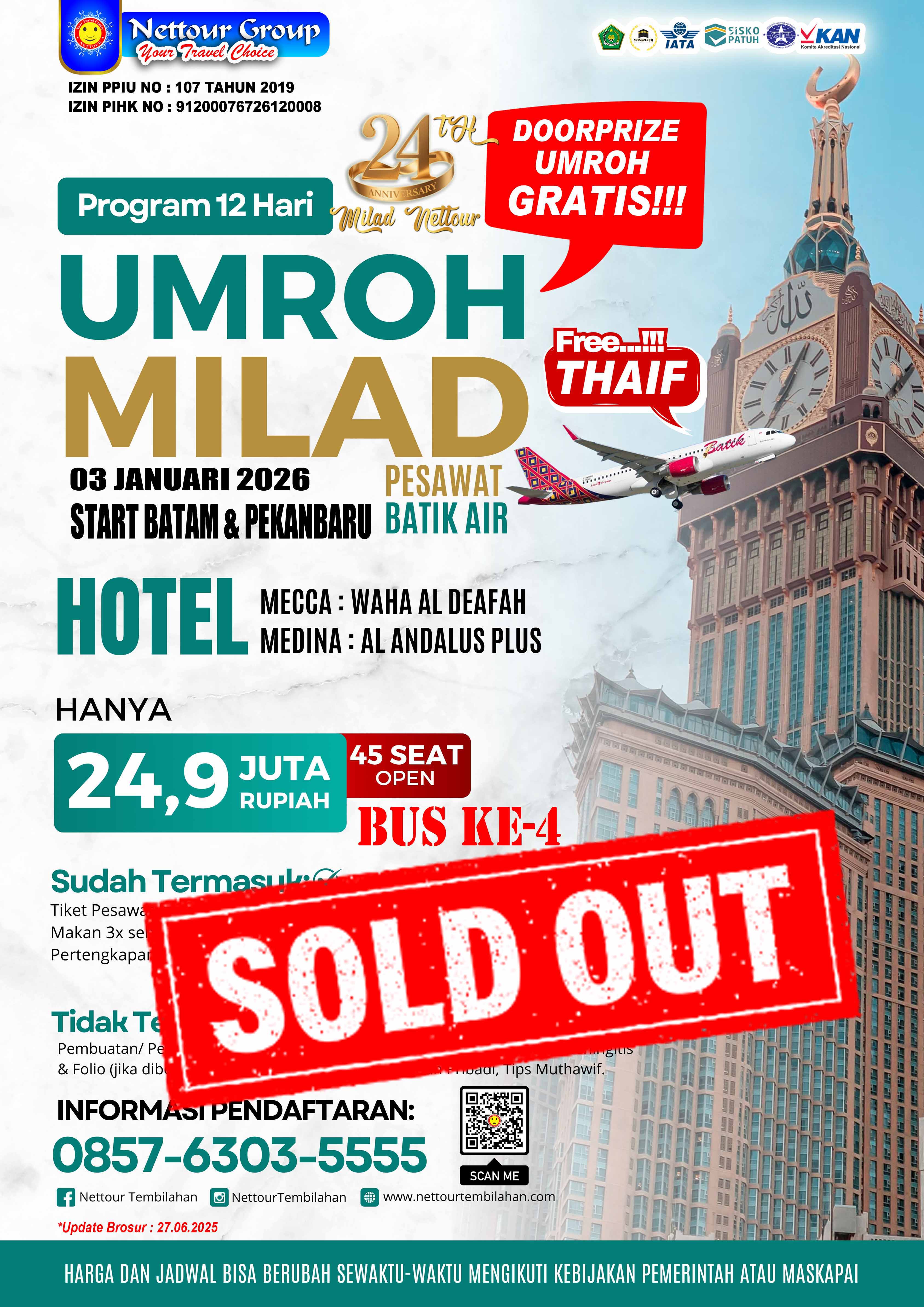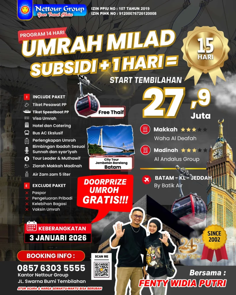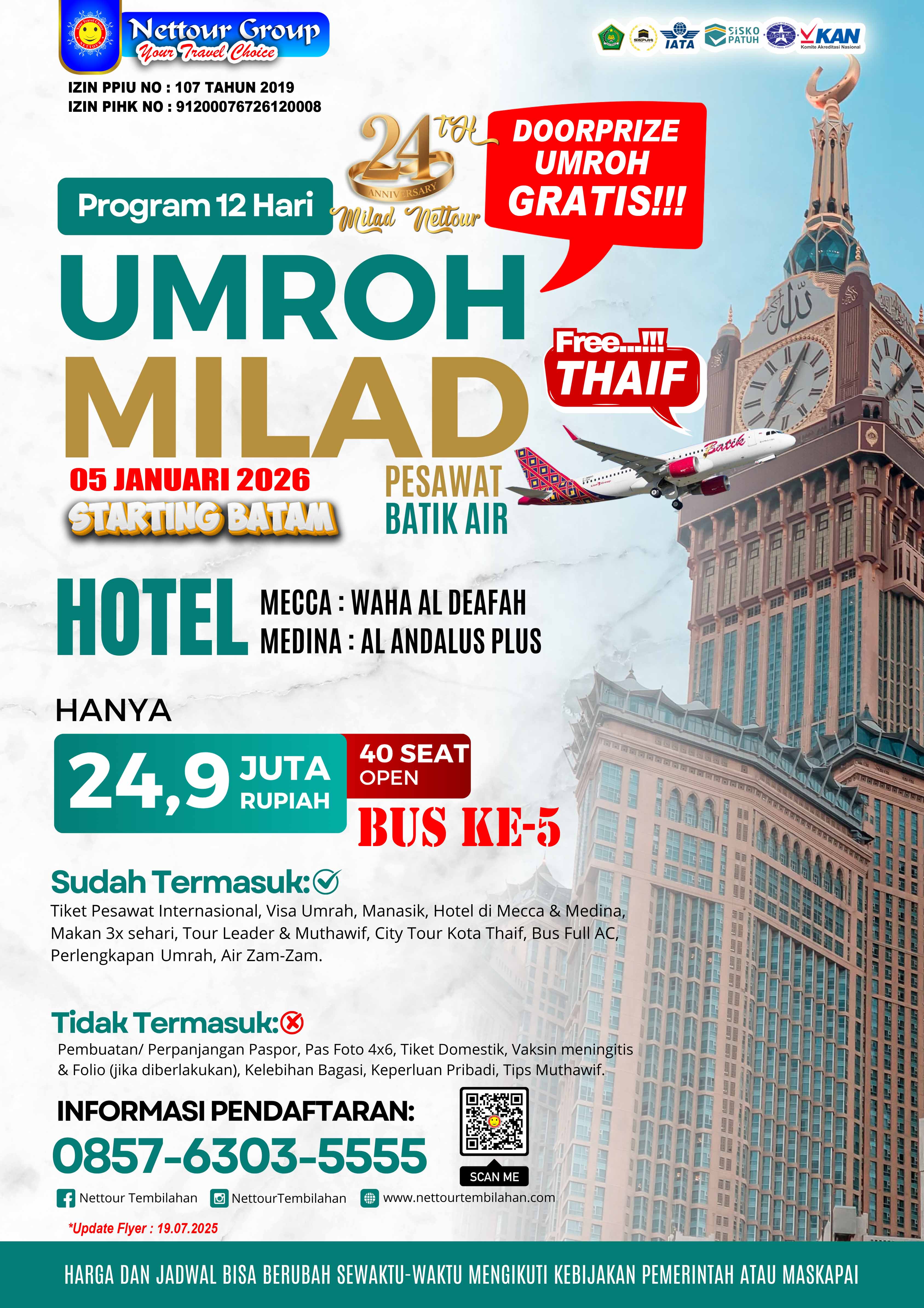 ✅ Perlengkapan Umrah: Buku Do\’a, Travel Bag, Kain Ihram (laki-laki), Mukena (perempuan), Kain Bahan Batik, Tas Paspor, Tas Sendal.