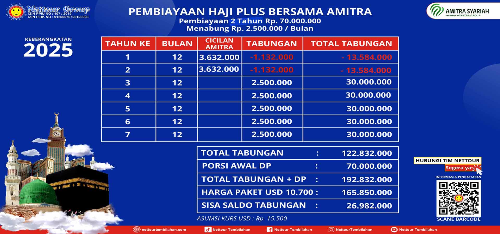 Pertama, tentukan paket umroh atau haji yang sesuai dengan kebutuhan Anda. Karena kami punya banyak pilihan, silakan pilih yang paling pas.